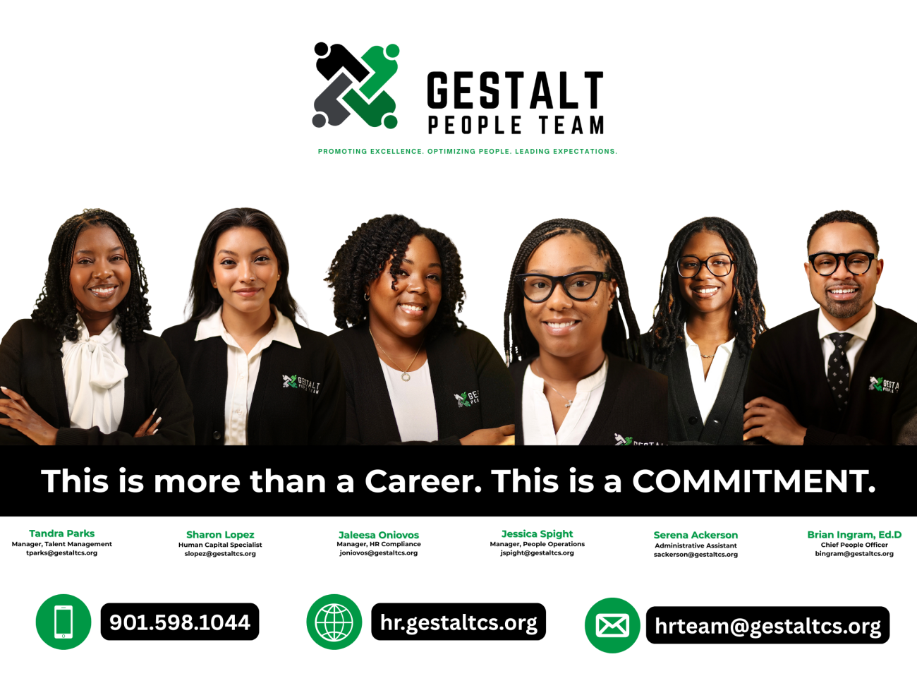 The Gestalt People Team is dedicated to supporting the educators who drive the success of our scholars. Each member of this team is committed to the well-being and professional growth of our staff, understanding that the heart of great schools lies in the people who make them thrive. Through purposeful action, empathy and unwavering support, the Gestalt People Team ensures our educators have the resources they need to succeed both personally and professionally.